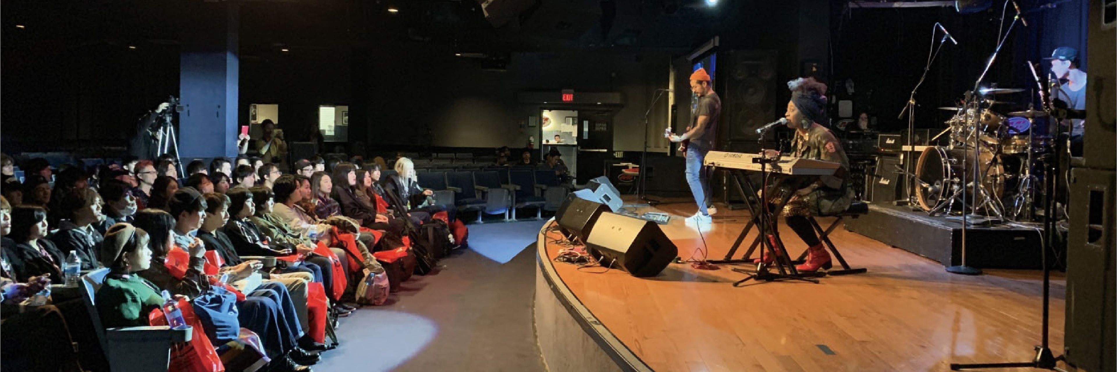 MIハリウッドでは、各パートに分かれ課題曲に取り組みます。そのほか、レコーディングを学ぶコースや本場の演技を学ぶコースもあります。最終レッスンのあとにはMIコンサートホールに集まり修了証書授与式!そして最後はアフターパーティーを楽しみます。