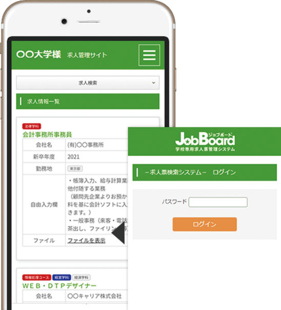 求人票の閲覧はもちろん、個別面談の予約や就職活動報告書、キャリアガイドの閲覧など、就職活動に役立つESP学園専用のコンテンツにいつでもどこからでもアクセス出来ます!