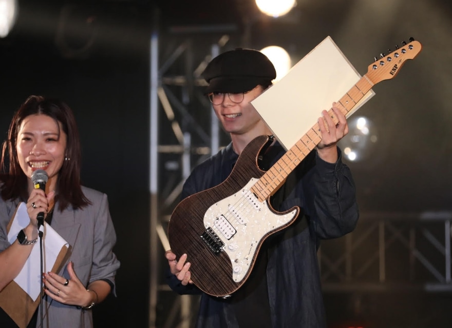 「ESP GUITAR CONTEST」は、ESP学園4校合同で行われたギタリストのためのコンテストです。各校から選ばれた代表ギタリストが圧巻のパフォーマンスを行いました! 2023年開催のグランプリには、MI TOKYOの学生が選ばれ、株式会社ESPよりギターの贈呈がありました!