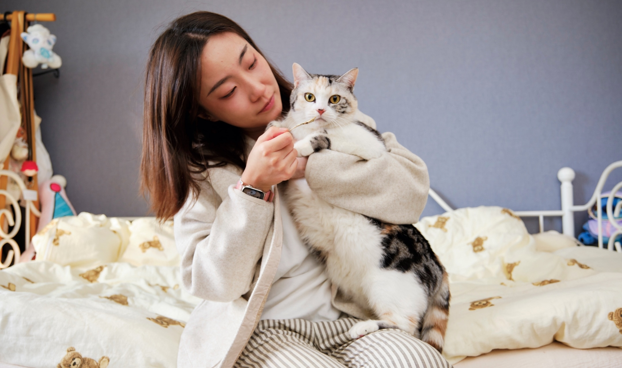 朝は毎日10時に起床。猫のトイレ掃除は朝の日課です。