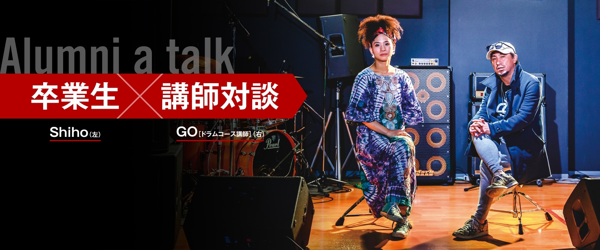 - そうでしたか?! それから、MI TOKYOで得られたいちばん大きなものは音楽仲間との出会いです。それまで出会ったことがないようなカッコいい人たち、豊富な知識の同級生がたくさんいていろいろと教えてもらいました。先生もプロとして現役で活躍している方が多く、音楽業界の様子をリアルタイムで聞けたのは貴重でしたね。学校から先生のライブを見に行く機会も結構あり、GOさんのライブにはすごく刺激を受けました。GOさんのドラムは、姿を見なくても音でわかるんです。そのシグネチャのすごさ、GOさんだけのプレイスタイルを築き上げているからこそバンドを支えられるところに憧れていました。