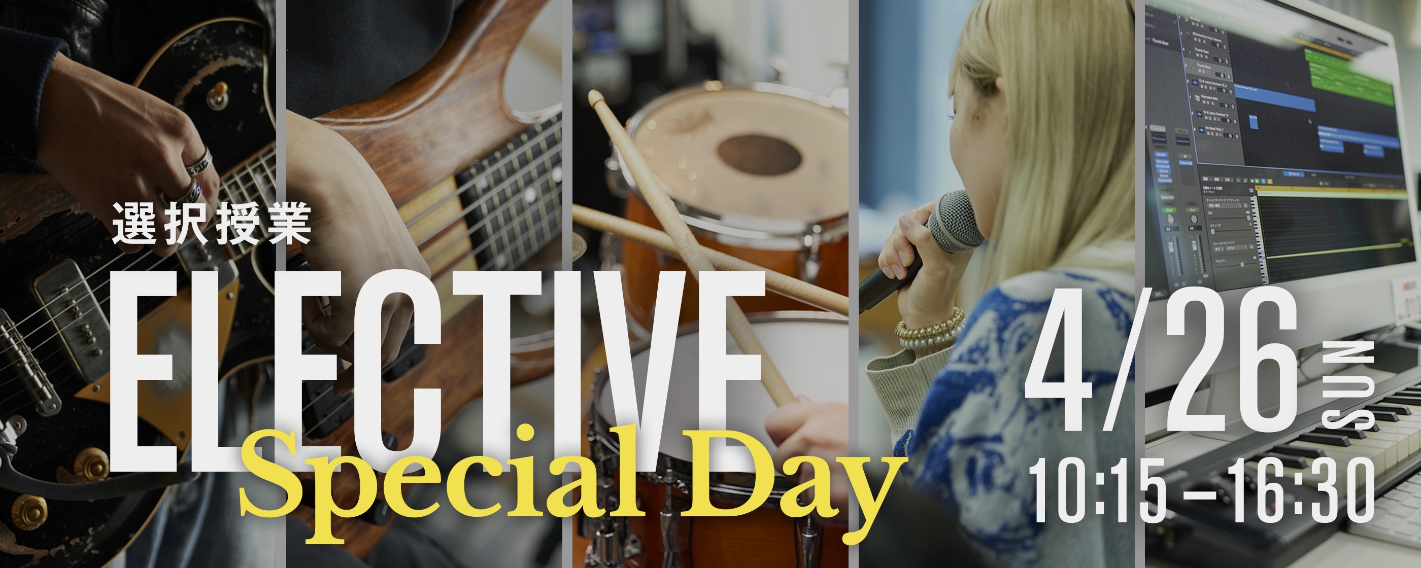 MI講師それぞれが得意とする音楽ジャンル、独自のテクニック、その講師しか教えることのできない完全オリジナルな授業を、今後の自分の音楽キャリアを見据え、選択して受講できるカリキュラムです。