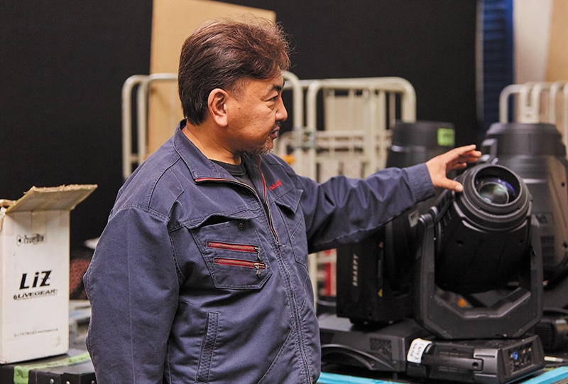 コンサート会場での照明アルバイトからキャリアがスタート。以来40年あまり、特殊舞台照明に携わってきた。さまざまな要望に応えるために膨大な数の機材を整備するとともに、新しい表現の可能性を追求して、常に最新の機材やシステム導入を目指し走り続けている。